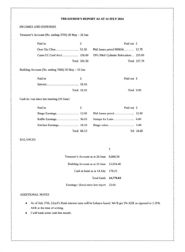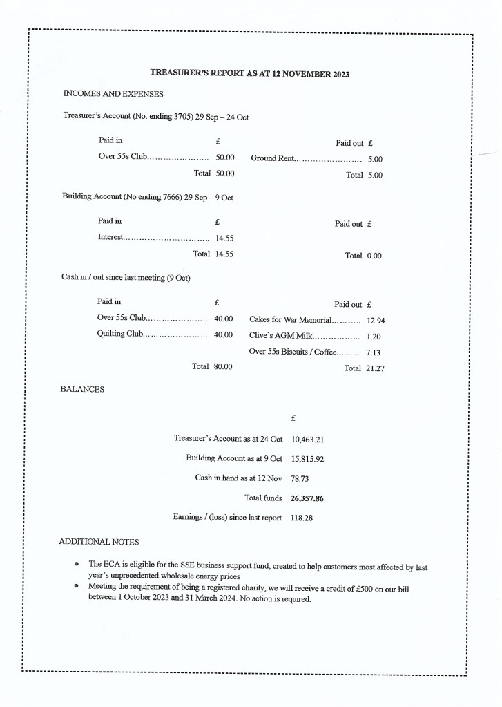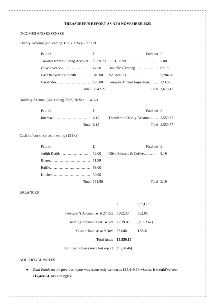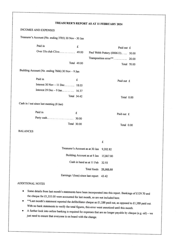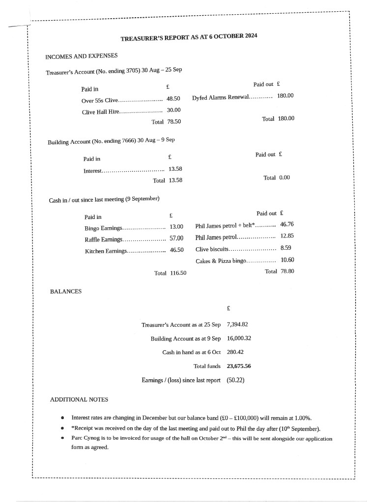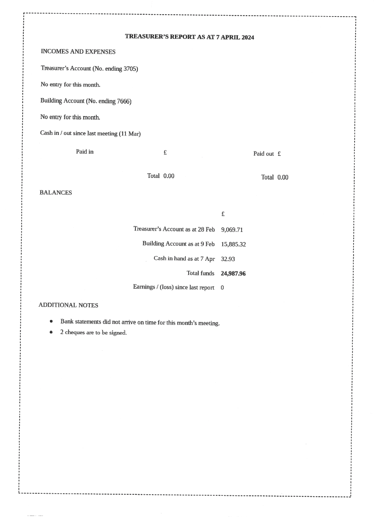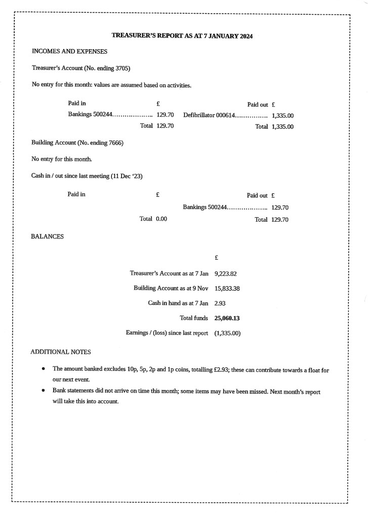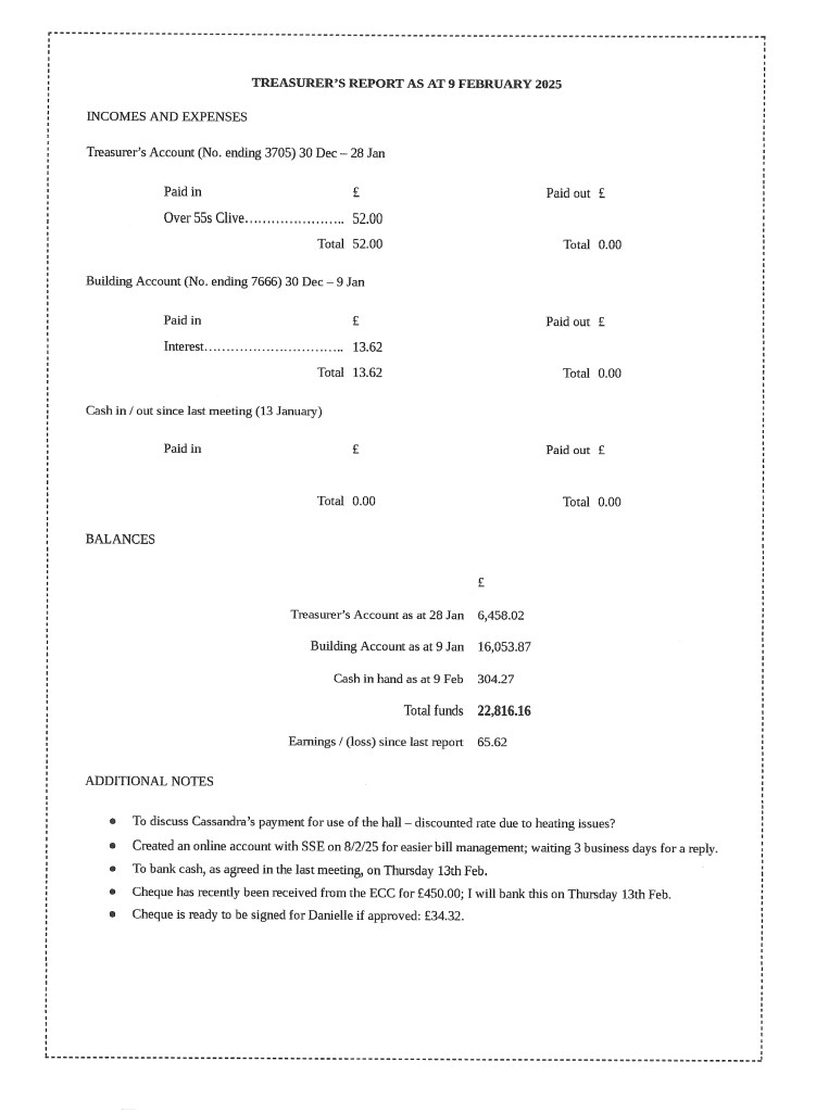 ADDENDUM: Balances were entered incorrectly on the treasurer’s report. Corrected balances are as follows: