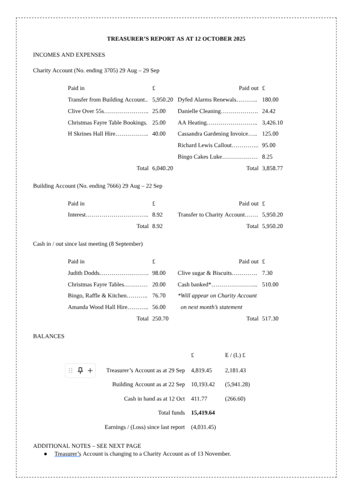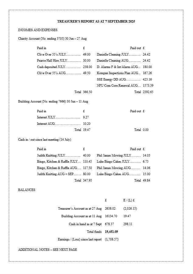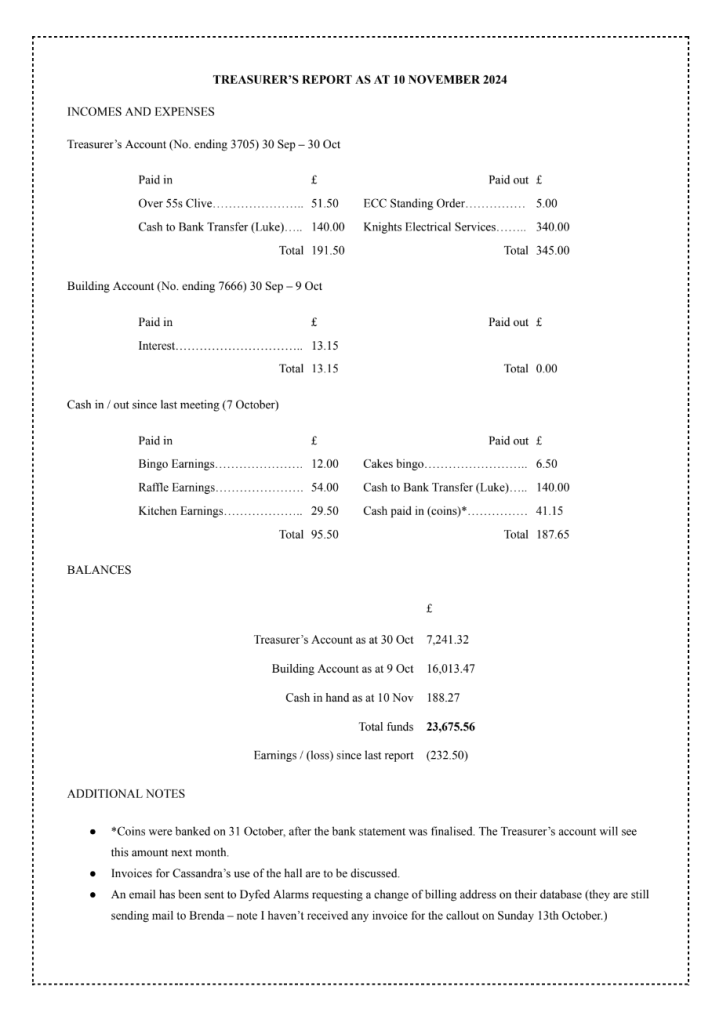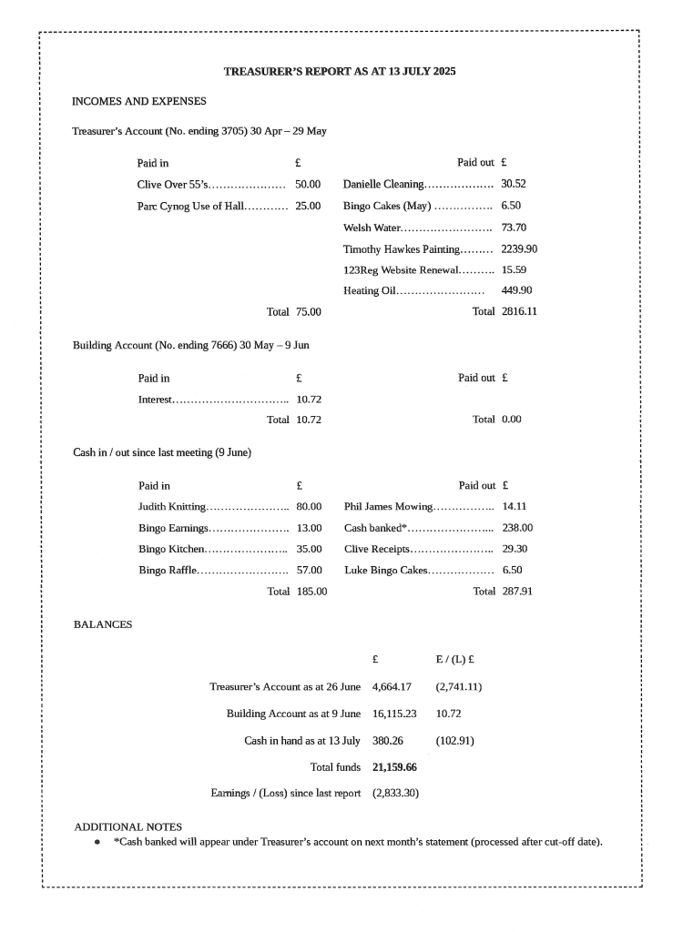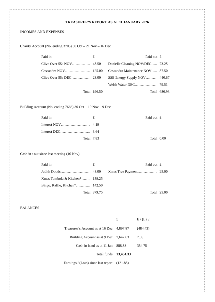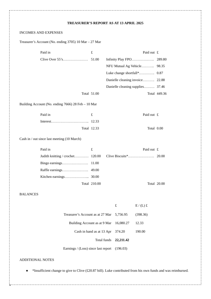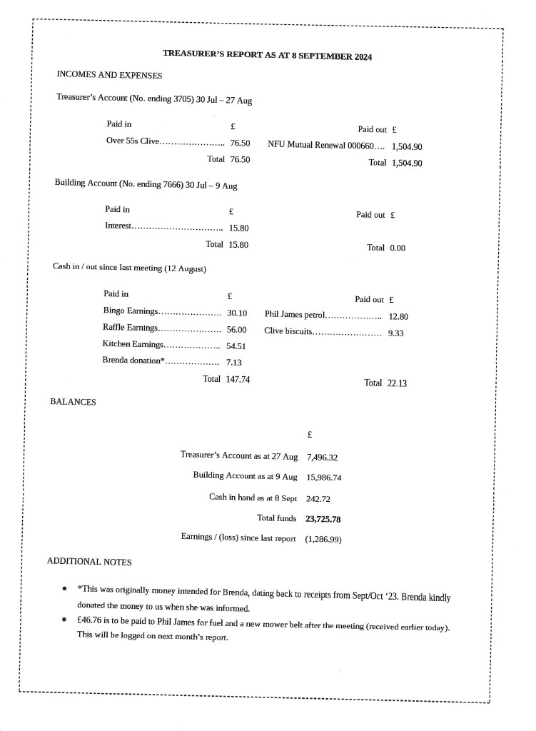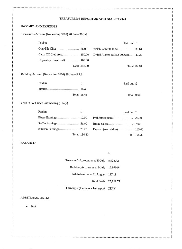 ADDENDUM: Balances were entered incorrectly on the treasurer’s report. Corrected balances are as follows: