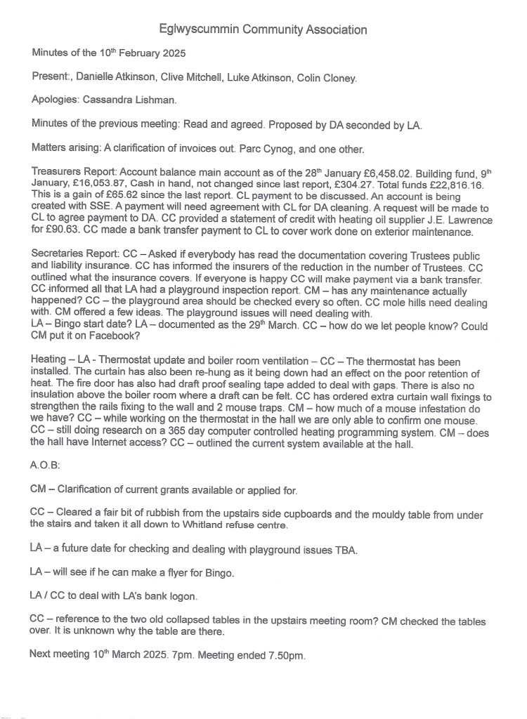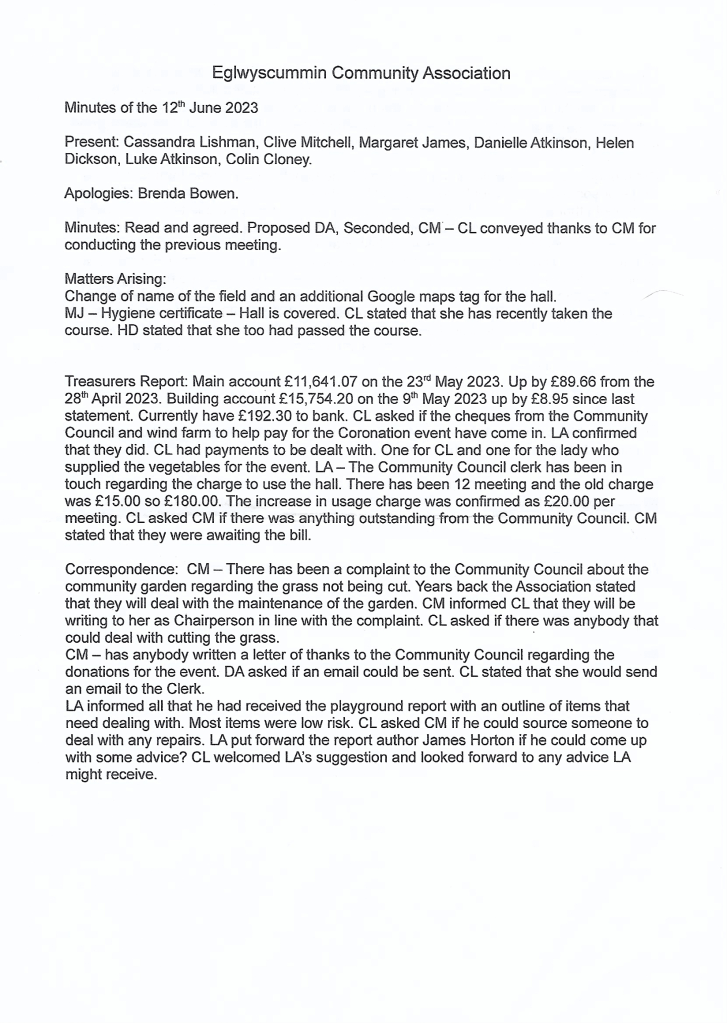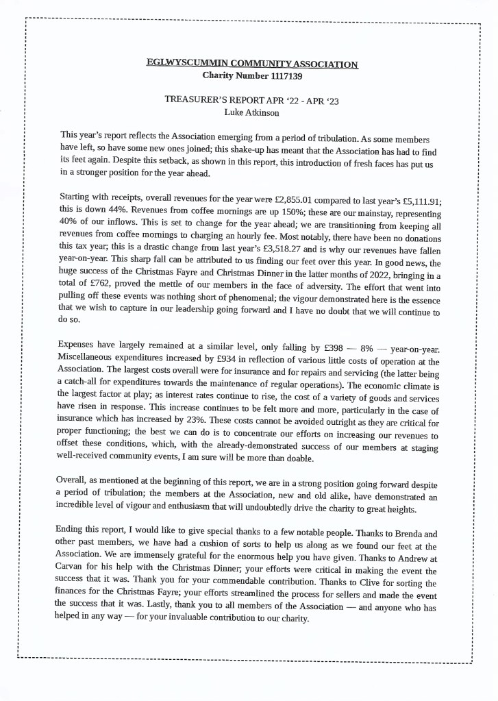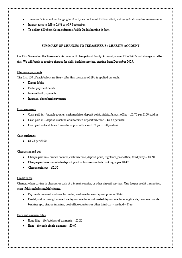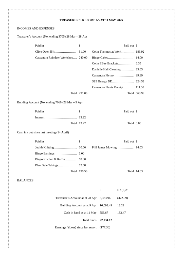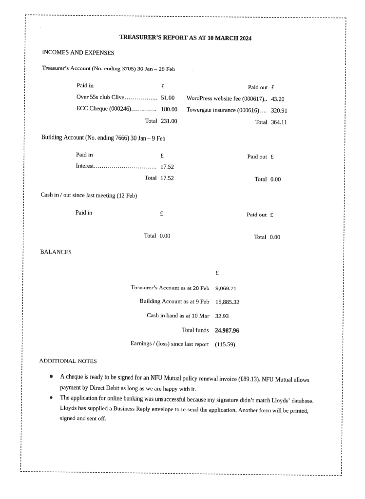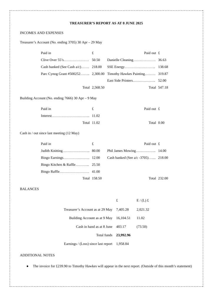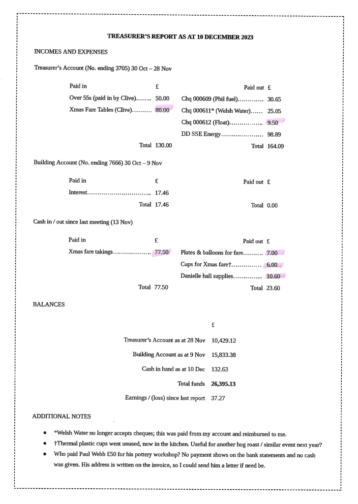ADDENDUM: Balances were entered incorrectly on the treasurer’s report. Corrected balances are as follows: