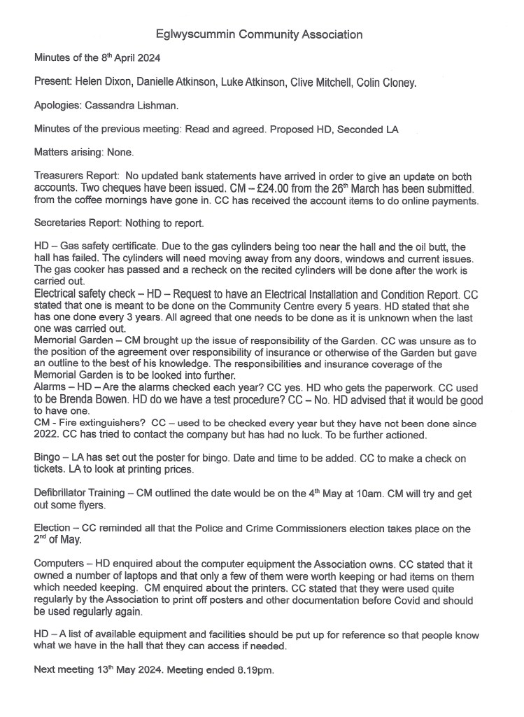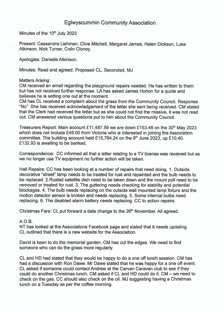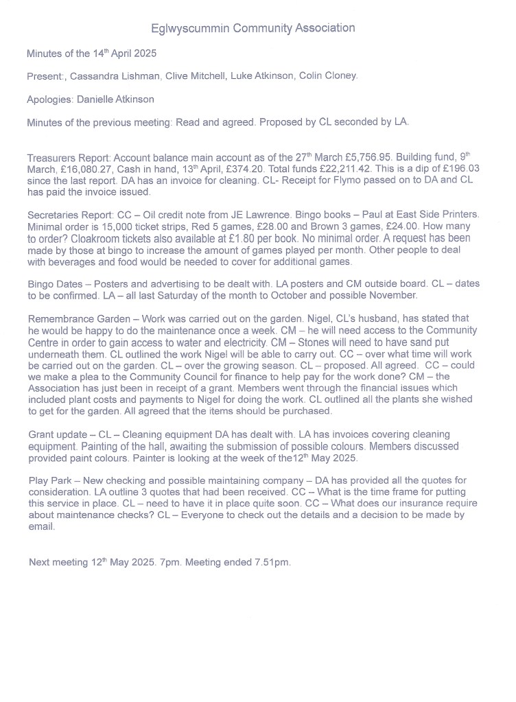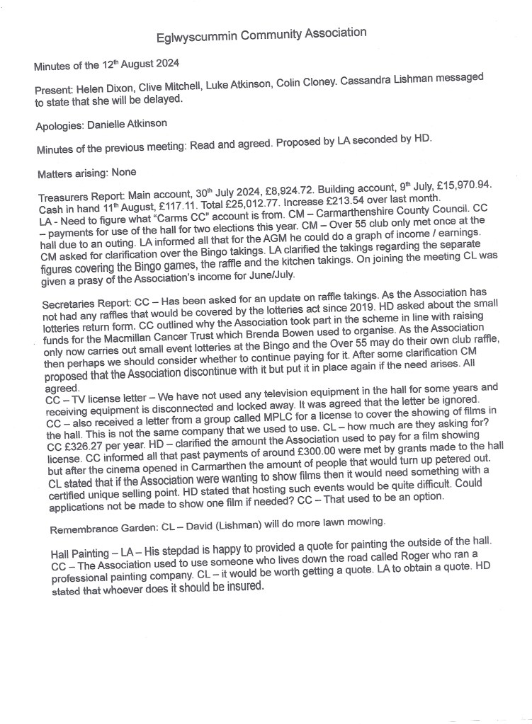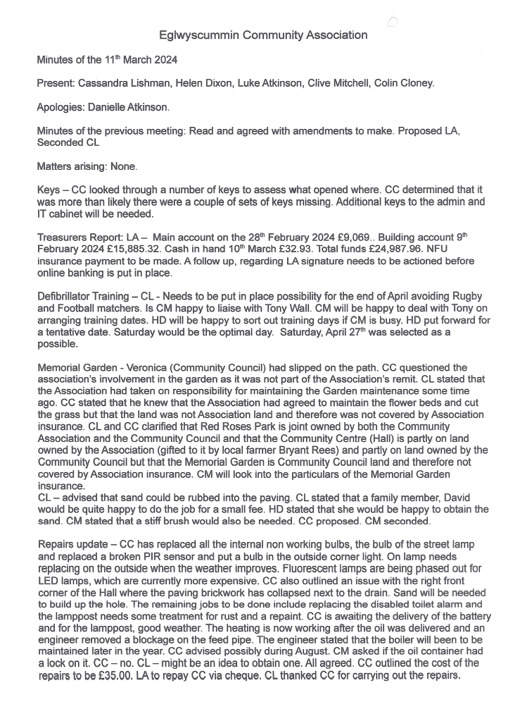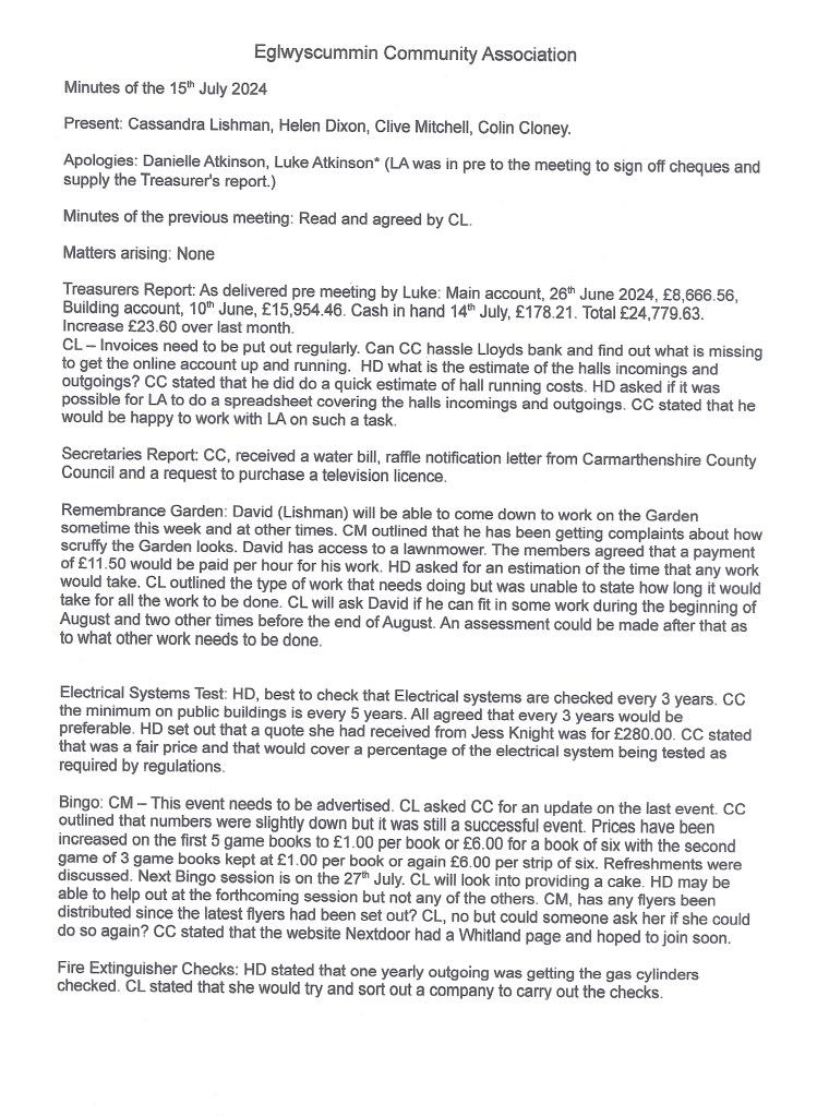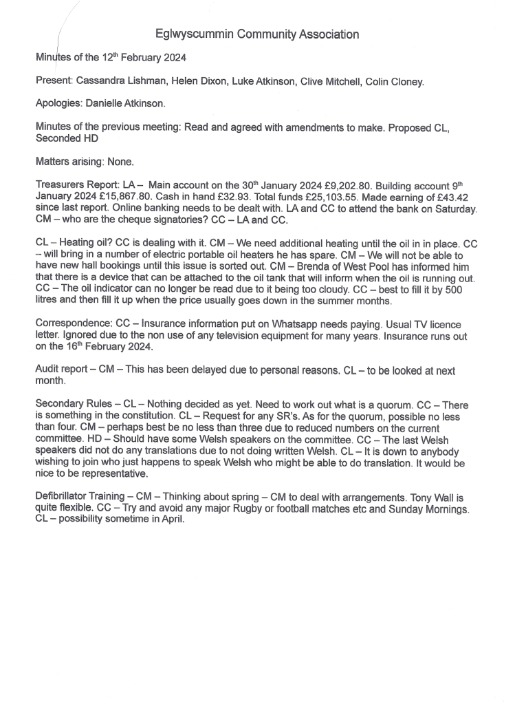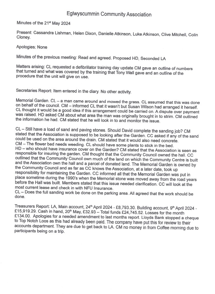 ADDENDUM: Balances were entered incorrectly on the treasurer’s report. Corrected balances are as follows: