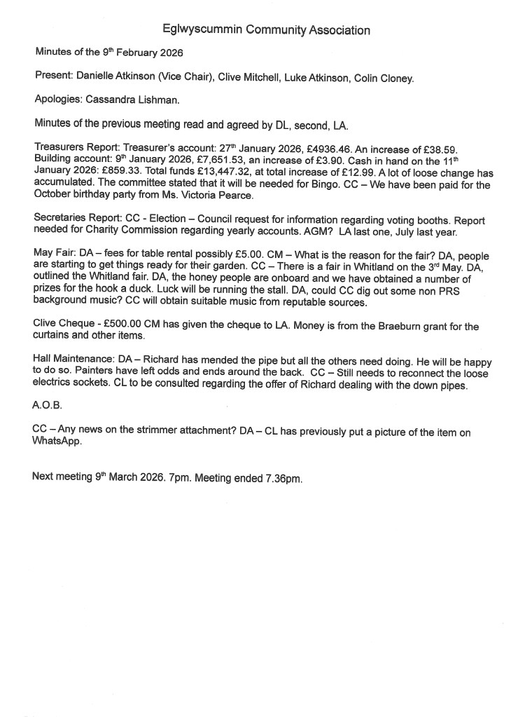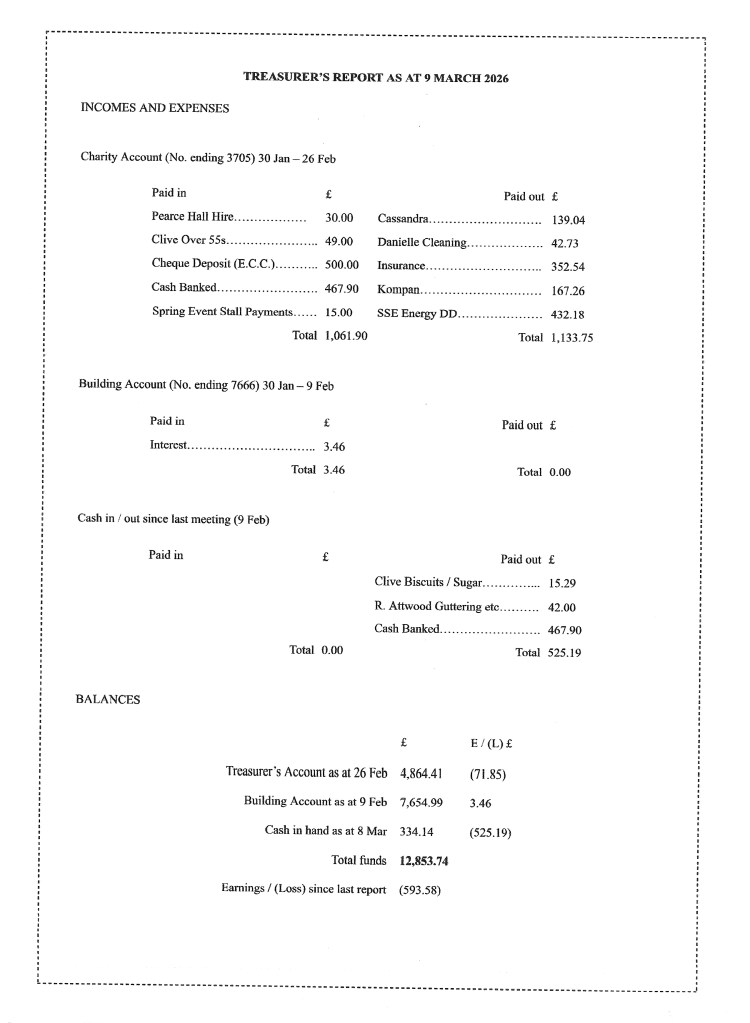 Treasurer’s Account: £8,943.73